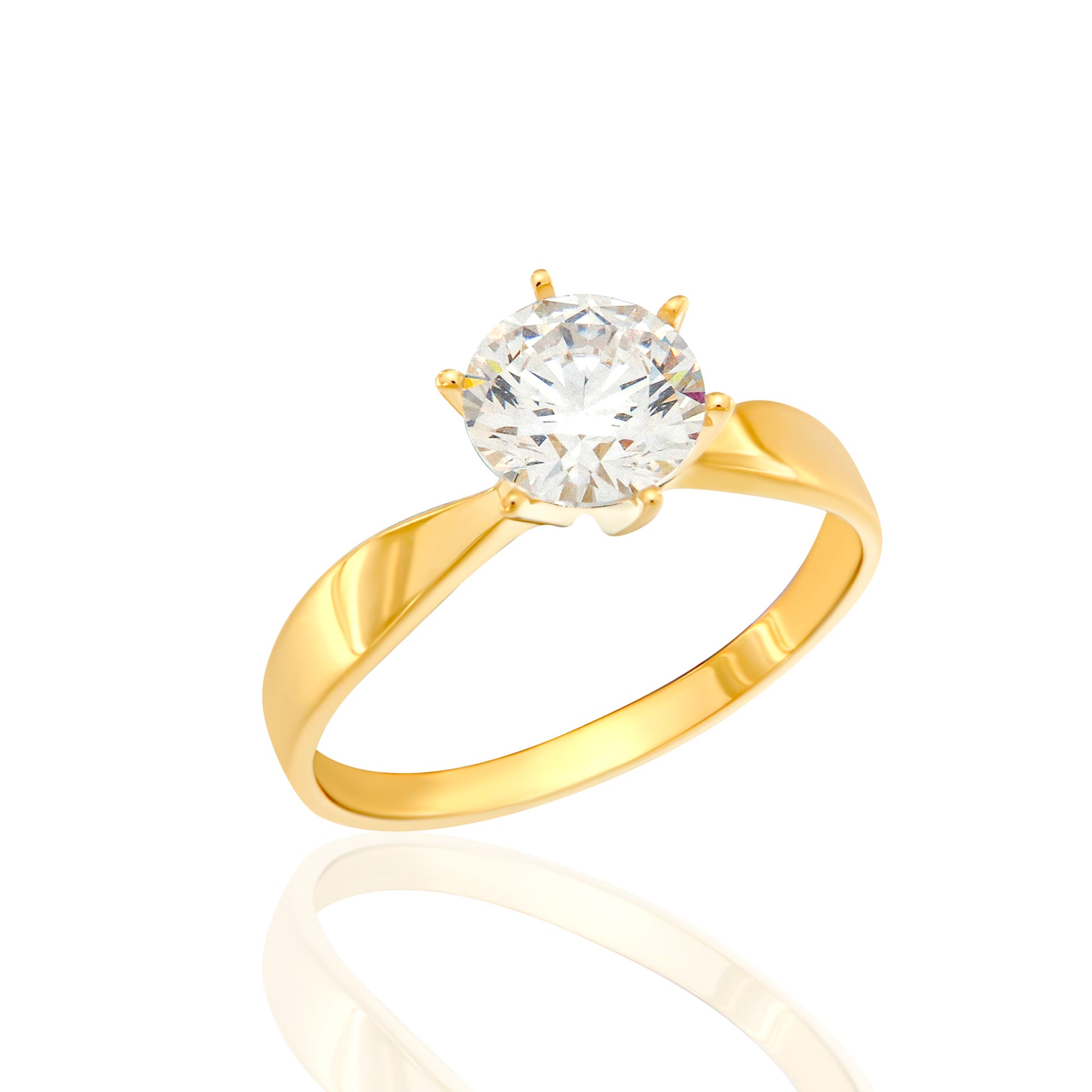 Δαχτυλίδι Μονόπετρο από κίτρινο χρυσό 14 καρατίων με λευκό ζιργκόν