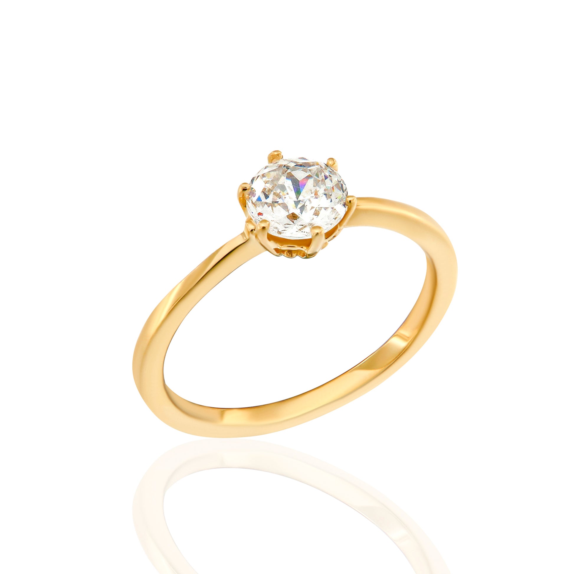 Δαχτυλίδι Μονόπετρο από κίτρινο χρυσό 14 καρατίων με λευκό ζιργκόν