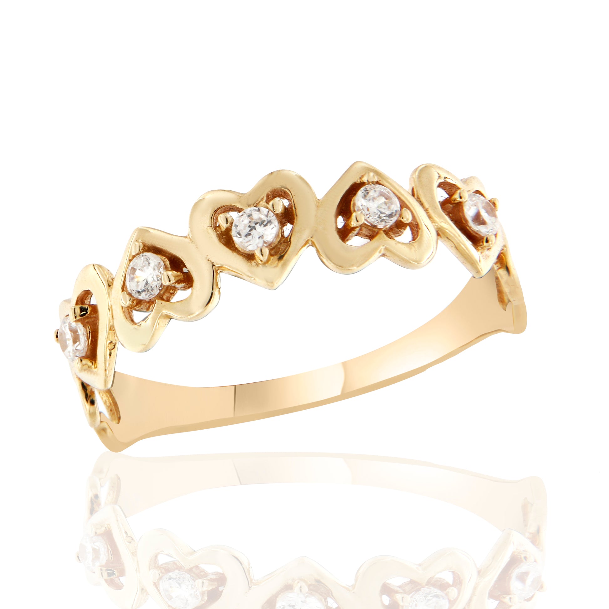 Δαχτυλίδι σειρέ καρδιών από κίτρινο χρυσό 14 καρατίων