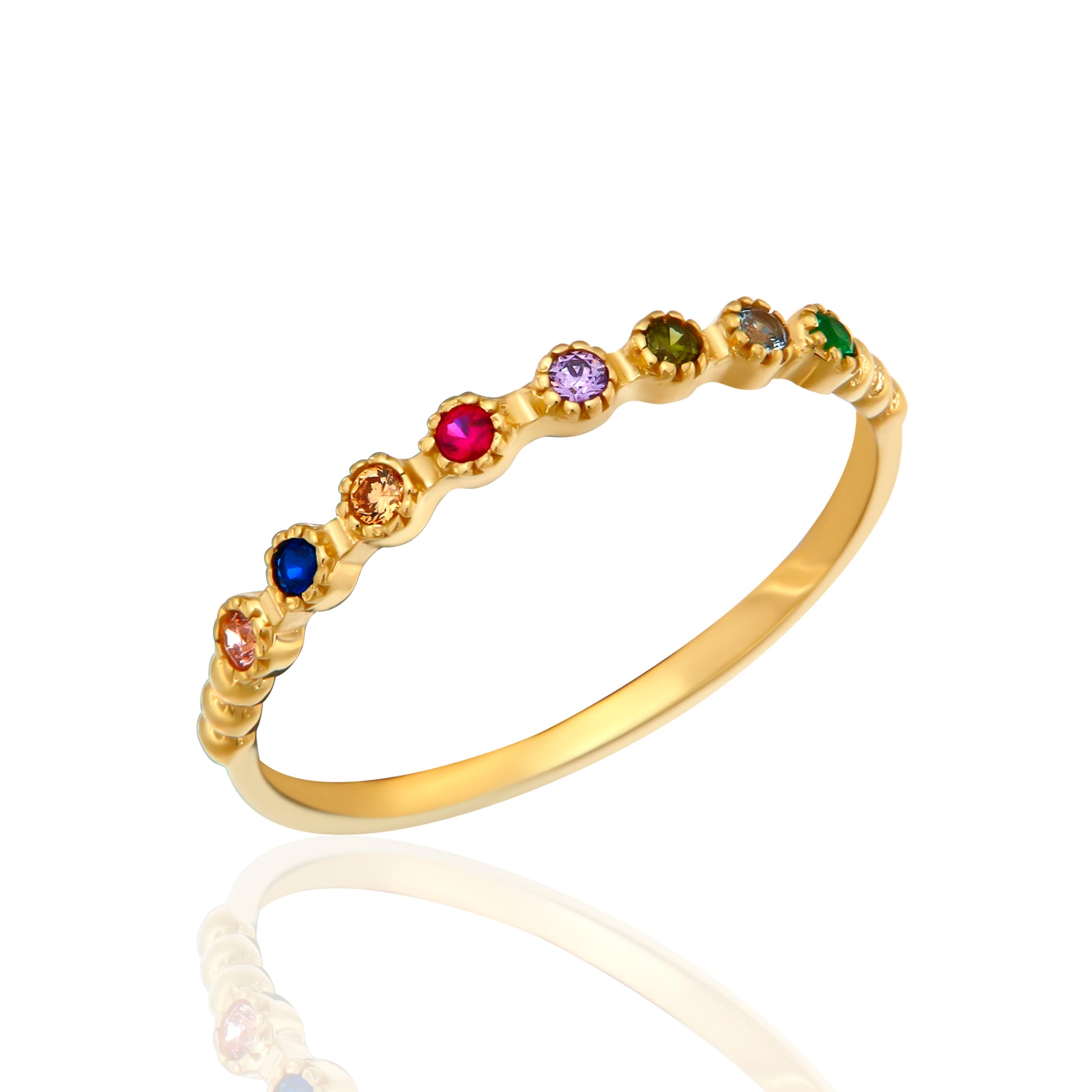 Δαχτυλίδι Vintage Σειρέ από κίτρινο χρυσό 14 καρατίων με χρωματιστά ζιργκόν