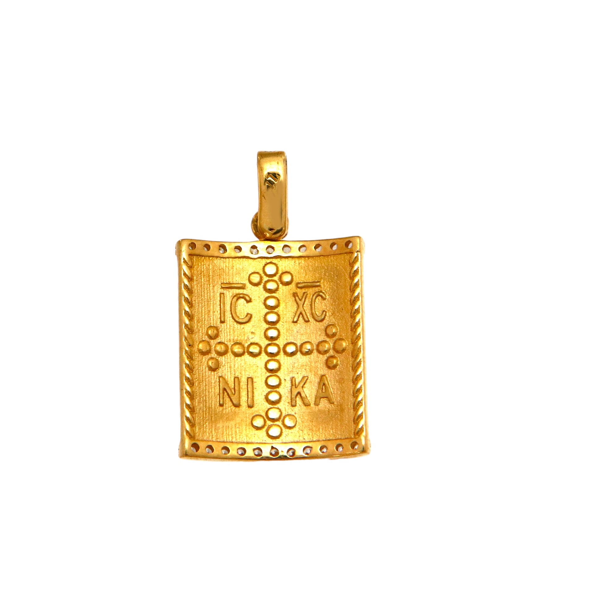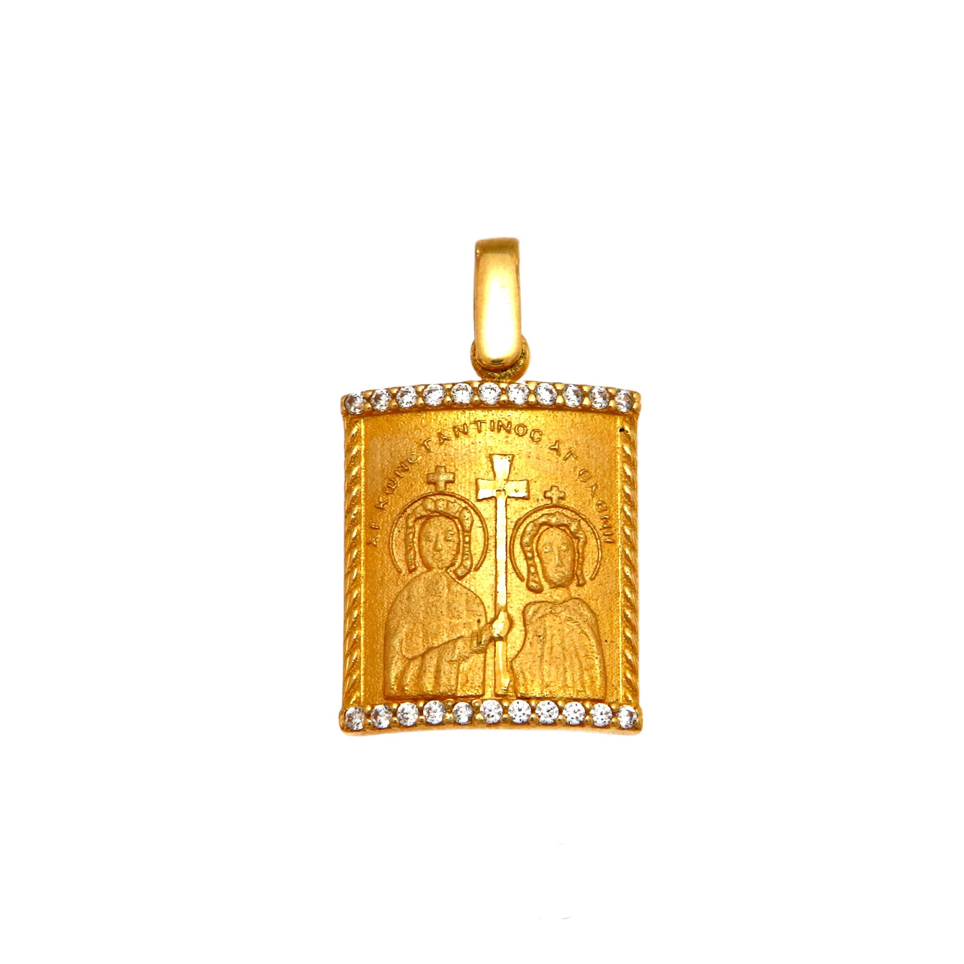 Μενταγιόν Κωνσταντινάτο από κίτρινο χρυσό 14 καρατίων με λευκές πέτρες ζιργκόν