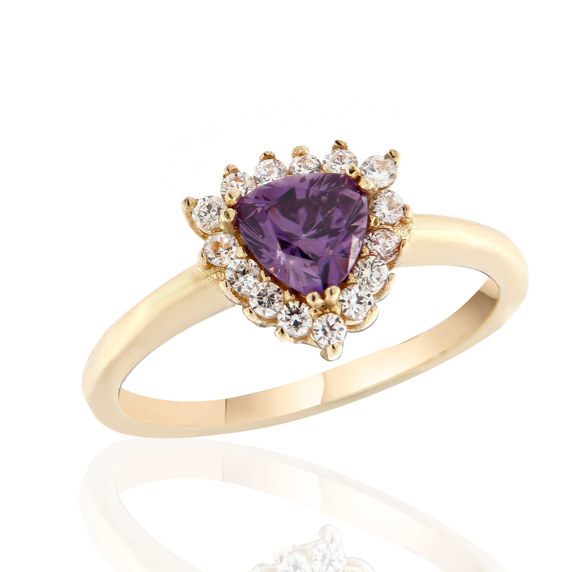 Δαχτυλίδι από κίτρινο χρυσό 14 καρατίων με μωβ τρίλιον ζιργκόν και λευκές περιμετρικά