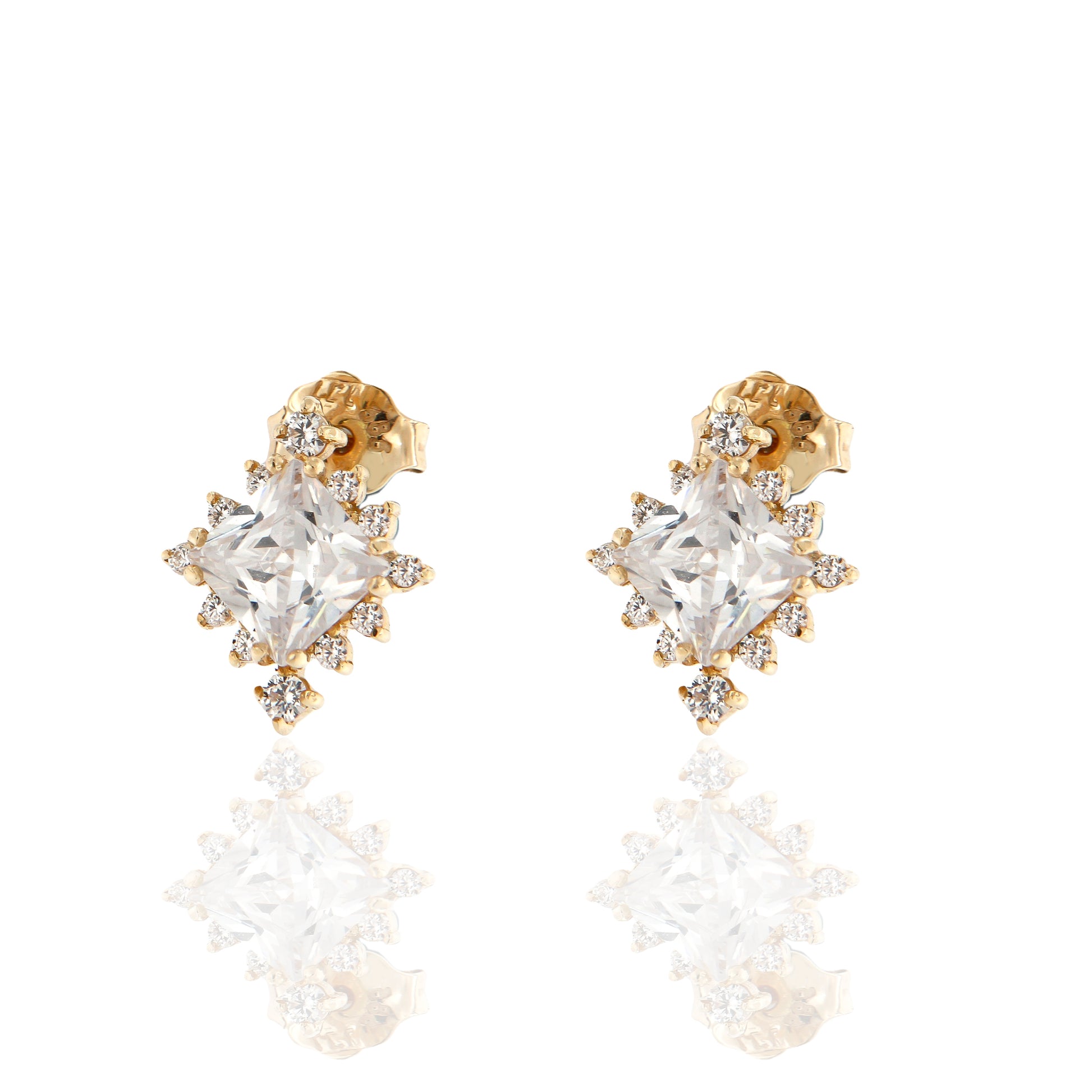 Σκουλαρίκια σε σχήμα καρέ από κίτρινο χρυσό 14 καρατίων με λευκά ζιργκόν