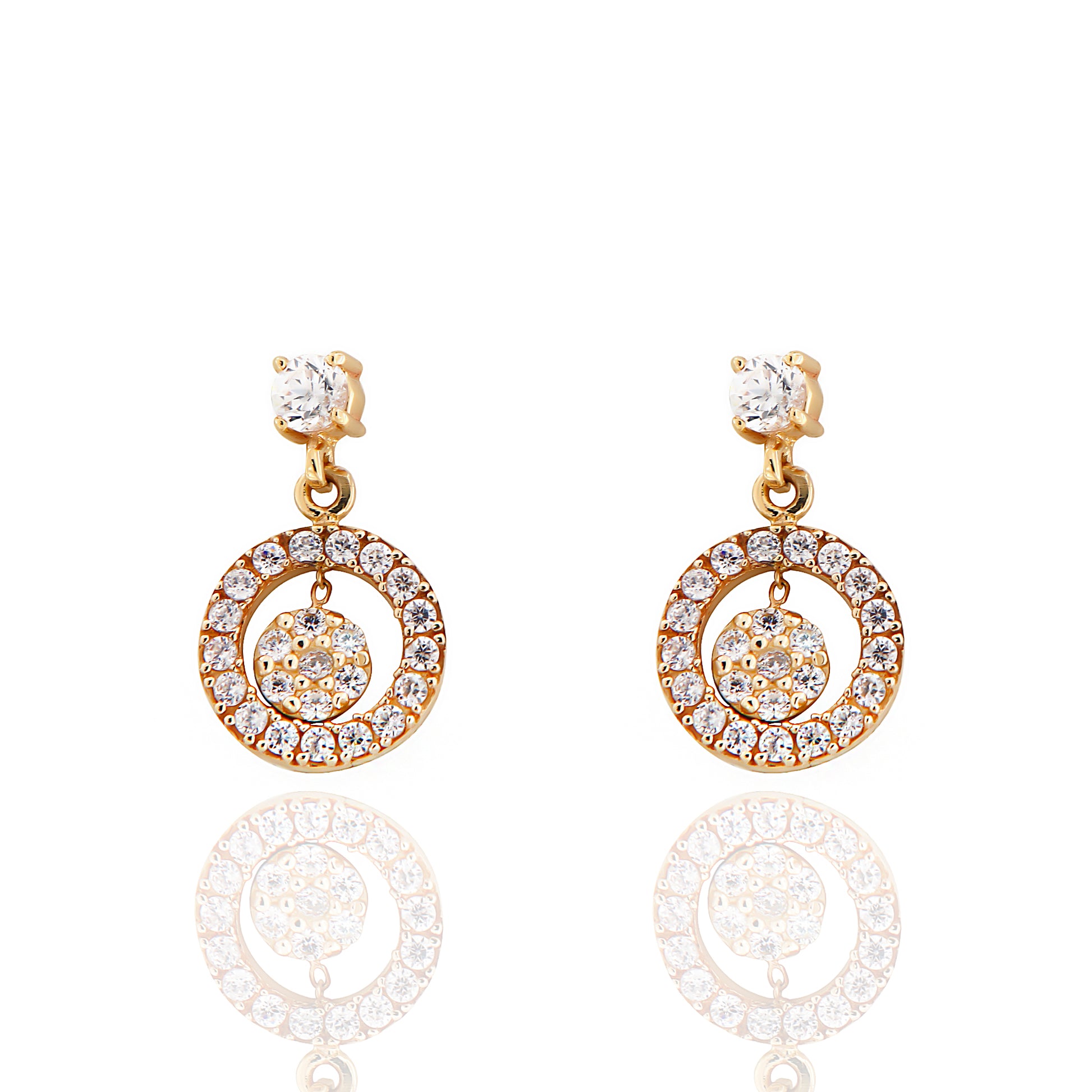 Σκουλαρίκι σε σχήμα κύκλου από κίτρινο χρυσό 14 καρατίων με λευκά ζιργκόν