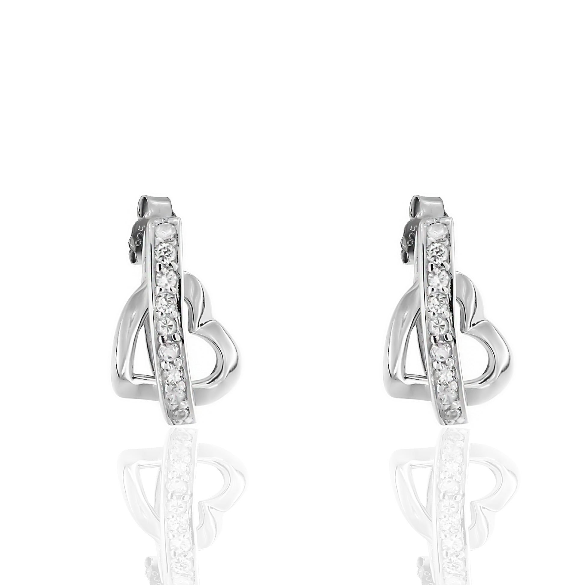Σκουλαρίκια Καρφωτά σε σχήμα τρισδιάστατης καρδιάς από ασήμι 925