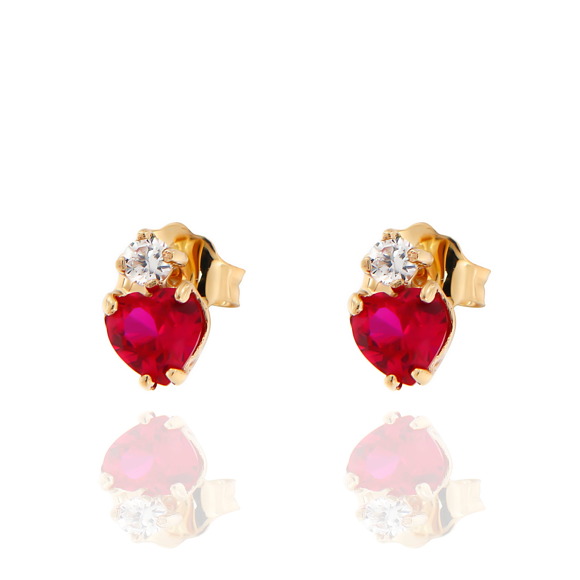 Σκουλαρίκι σε σχήμα καρδιάς από κίτρινο χρυσό 14 καρατίων με κόκκινο και λευκό ζιργκόν